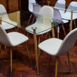 COMEDOR NORDICO EN CRISTAL – 4 SILLAS TAPIZADAS