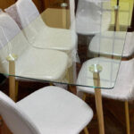 COMEDOR NORDICO EN CRISTAL – 6 SILLAS TAPIZADAS